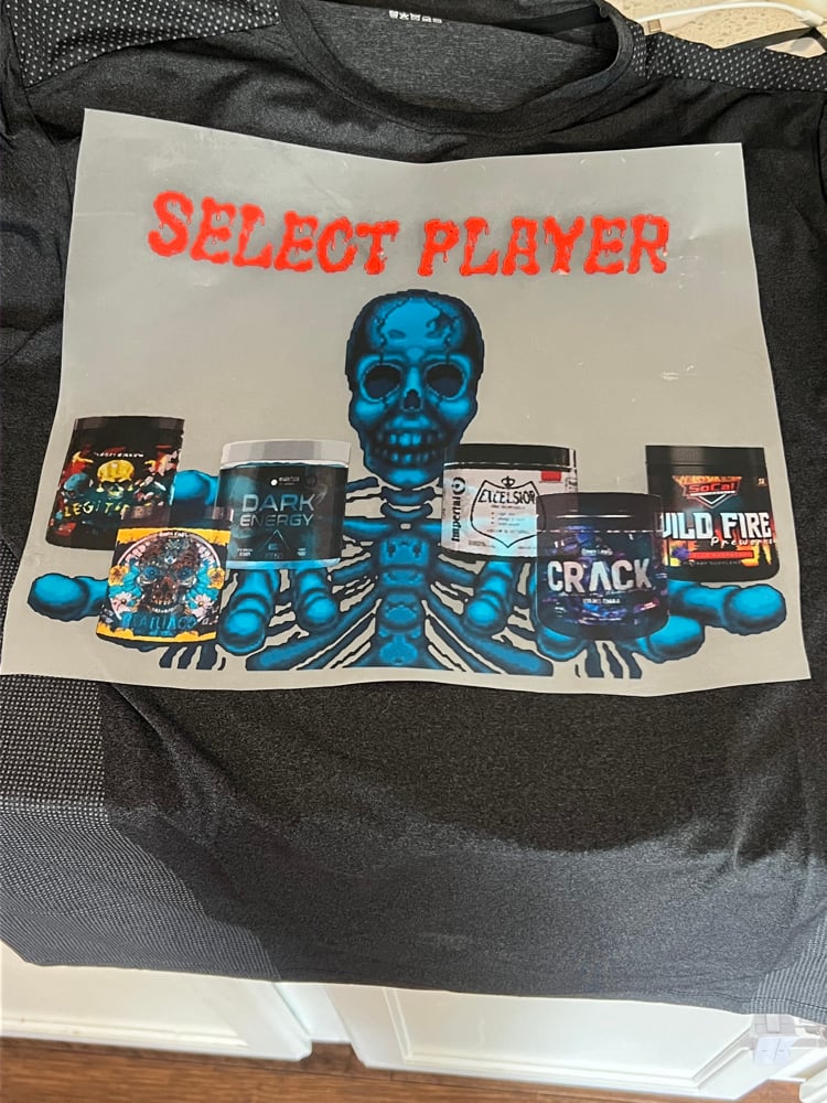 Classic acid wash black shirt with classic Gym Dad logo on the front crest with a large select player logo on the back. Also available upon request to put a large classic logo on the back.